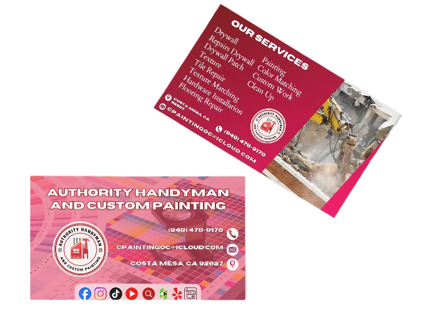 At Authority Handyman & Custom Painting, we deliver reliable, high-quality services across Costa Mesa and surrounding areas. With years of experience, our team specializes in drywall installation and repair, custom painting, texture matching, and a wide range of handyman solutions. Whether you need small repairs, detailed finishes, or complete residential and commercial projects, we are your trusted partner for professional results that last.